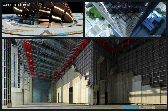 Finally, the technique is applied in West Tower of Coastal City vividly and incisively. In view of its visual and creative structure, the film has reached the international advanced advertising level, and is comparable to the top-level advertising films from Benz and Audi in a lot of competitions. The visual creativity have not only been highly appreciated by market, but also been followed among the same industry, thus becoming one of the main expression approaches in the architect 3D films.