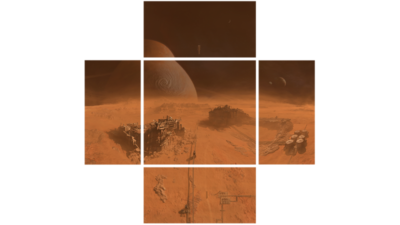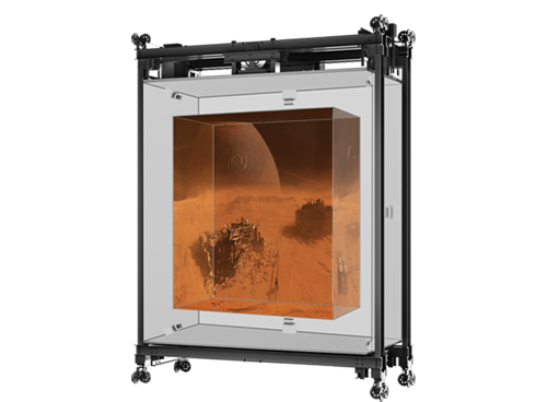 The Film simulated the scene that human went back to CEEC Aircraft Carrier after exploring the virgin land on the outer planet in the Age of Space Exploration. The five glass panels of the elevators are specially designed to display this video. As the elevator goes up, the five glass panels showed the scenery outside the ascending spaceship. You can see the rusty sands of the mining planet, human bases located everywhere, the mining pits being exploiting, smelters with heavy smoke, and the mining trucks struggled to move forward... When the elevator rises to the top, the spaceship in the video arrived at its destination at the same time. People will feel they are immersed in a spaceship capsule. And when the doors of the elevators opened, the technological and futuristic exhibition center appeared in front of you.