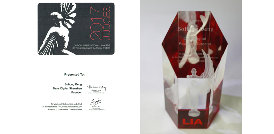 左:2017年LIA評委邀請函 右:第33屆LIA分類評審主席紀念杯