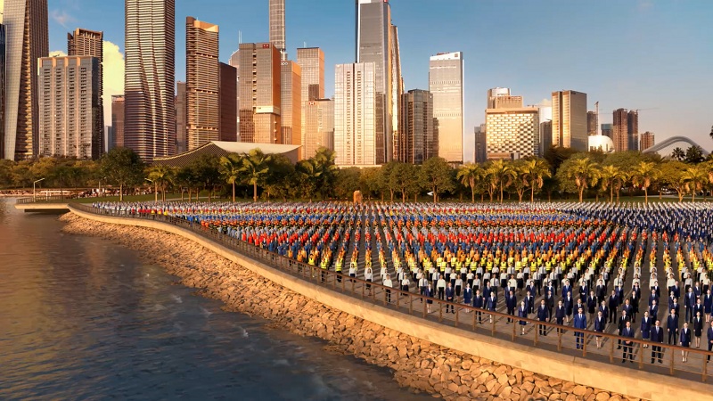 本次《埋頭苦干》城市宣傳片通過獨特的符號化表現方式,進一步深化創意。影片結尾,曾在瀘定橋上沖鋒陷陣的小戰士出現在深圳前海石公園,向著朝陽莊嚴敬禮。隨著鏡頭拉遠,與他年紀相仿的中學生以及來自各行各業的工作者,一同在陽光下昂首而立。人群中,大量深圳企業標志散布其中,華為、比亞迪、大疆、騰訊等企業,憑借持續的研發投入和創新精神,成為全球科技領域的領軍企業。 這些“深圳土特產”的背后,是實驗室里凌晨三點的燈光,是生產線旁反復調試的耐心,是無數個“低頭鉆研”的普通人,把“埋頭苦干”二字刻進了城市的產業基因里。這種別出心裁的創意表達,在以往城市宣傳片題材中極為少見,為深圳城市形象的塑造增添了濃墨重彩的一筆。