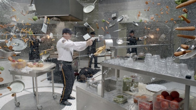 在電影X 戰(zhàn)警系列也運(yùn)用了子彈時間,核心體現(xiàn)在快銀角色上,《逆轉(zhuǎn)未來》廚房營救、《天啟》學(xué)院救援等場景中,時間近乎凝固,子彈、碎片懸浮,快銀在靜止環(huán)境中行動。