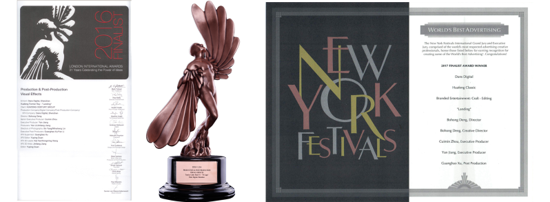 鄧博弘先生與其他六位行業(yè)內(nèi)赫赫有名的創(chuàng)意人共同受邀出任評(píng)審主席。其中,三位來自臺(tái)灣、一位來自馬來西亞、一位來自香港、還有一位來自加拿大,而鄧博弘先生是唯一一位來自中國(guó)大陸的評(píng)審主席。他亦是2017年首場(chǎng)LIA華文創(chuàng)意競(jìng)賽單元的評(píng)審成員。2016年他在LIA倫敦國(guó)際獎(jiǎng)上一舉摘得兩項(xiàng)最佳視覺效果競(jìng)賽類獎(jiǎng)項(xiàng)。此類別比拼的不僅是優(yōu)秀的創(chuàng)意,還有高超嫻熟的技術(shù),是比賽中競(jìng)爭(zhēng)最激烈的獎(jiǎng)項(xiàng),每年都是全球頂級(jí)的影視廣告公司競(jìng)相爭(zhēng)奪的大熱門,相當(dāng)于奧運(yùn)會(huì)比賽中的男子一百米。《哈利波特》系列的后期特效制作公司MPC、曾得過戛納全場(chǎng)大獎(jiǎng)的影視廣告制作公司JAMM、《地心引力》的后期特效制作公司The Mill等都是歷年該類別的強(qiáng)有力競(jìng)爭(zhēng)者。為此,倫敦國(guó)際獎(jiǎng)亞洲伙伴Gordon Tan和亞洲顧問吳金君先生造訪點(diǎn)石,他們表示能從1萬(wàn)5千部影視廣告、宣傳片、CG動(dòng)畫短片作品中脫穎而出,這對(duì)于毫無國(guó)際4A背景的獨(dú)立創(chuàng)意人來說非常難得。點(diǎn)石數(shù)碼的這份努力和成績(jī)也使他們更加堅(jiān)定了增設(shè)“華文創(chuàng)意”單元的決心。